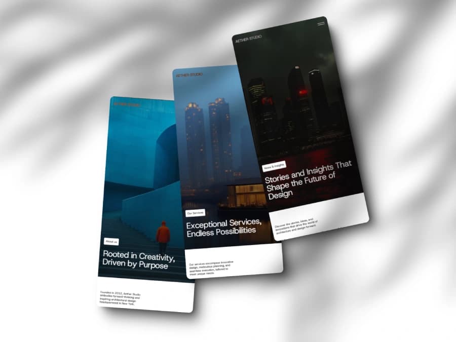 With Aether Studio, your work is presented in a way that inspires, captivates, and impresses clients and industry leaders. It’s more than just a website—it’s a digital masterpiece for design visionaries.